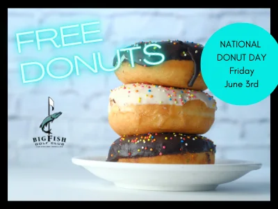 Donut Day National Donut Day Friday, June 3 FREE Donut with your paid golf round. Book your round today! + Add to Google Calendar + iCal / Outlook export The event is finished. Date Jun 03 2022 Expired! Time 8:00 am Category Special Event Share this event