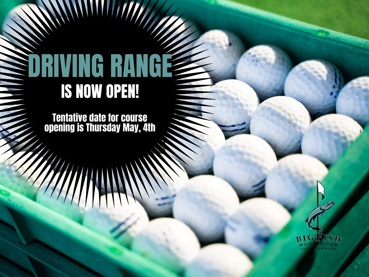 Driving Range Open Our Driving Range is now OPEN!! Tentative date for course opening is Thursday, May 4th + Add to Google Calendar + iCal / Outlook export The event is finished. Date Apr 26 2023 Expired! Category Golf Event Share this event